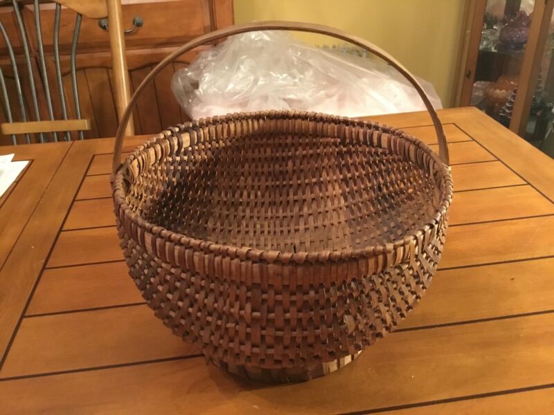 Title (ebay affiliate link): Rare Splint Split Oak Tight Weaved Appalachian Buttocks Egg Gathering Basket