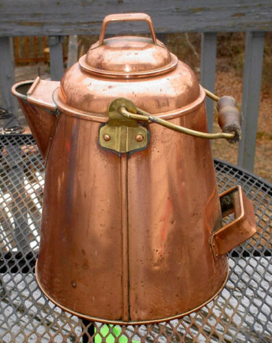 Title (ebay affiliate link): ANTIQUE PRIMITIVE COPPER & BRASS CANDY KETTLE WATER PITCHER W/ BALE HANDLE N/R