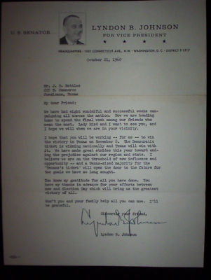 LYNDON B. JOHNSON LETTER FROM U.S. SENATOR