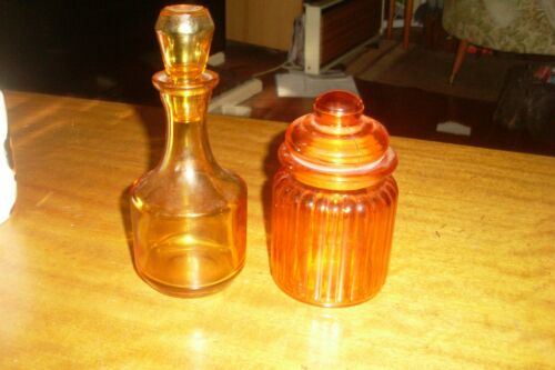 Title (ebay affiliate link): Small Vintage Retro 60s Amber Depression Glass Genie Style Bottle & Orange Jar