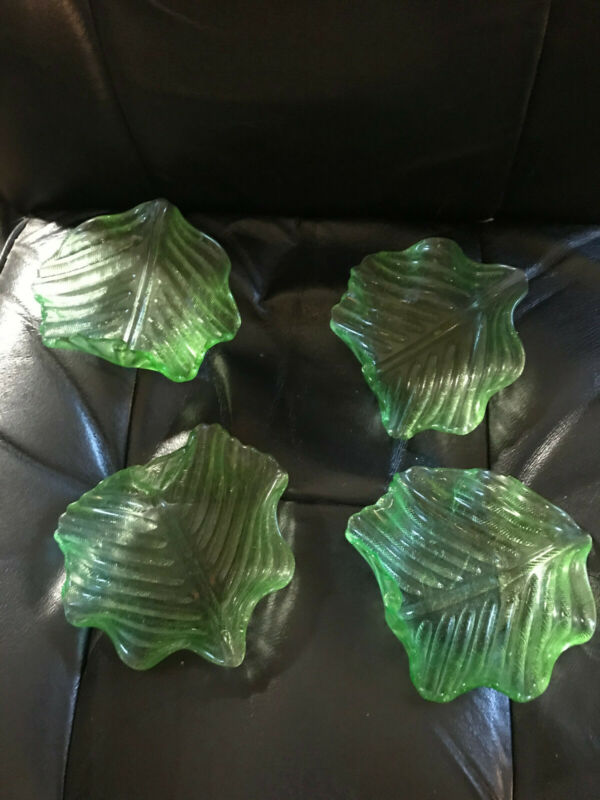 Title (ebay affiliate link): Four Vintage Green Glass Plates Lettuce Leaf Shape
