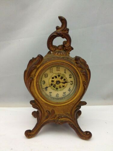 Title (ebay affiliate link): VINTAGE / ANTIQUE NEW HAVEN METAL WIND-UP DESK SHELF ORNATE CLOCK - WORKING