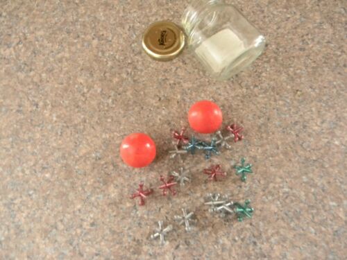 Title (ebay affiliate link): Vintage Antique Jacks Game With 17 Colored Metal Jacks And 2 Balls. Rare Find