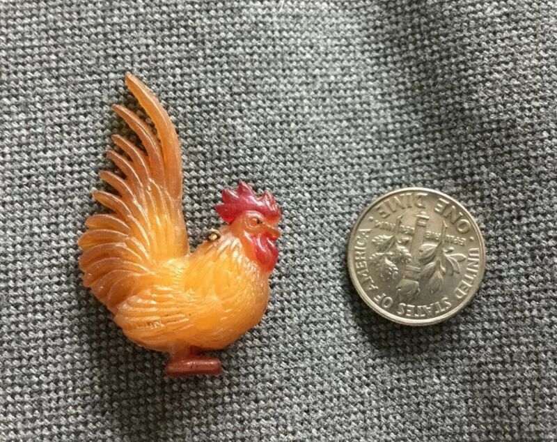 Title (ebay affiliate link): VTG BUTTERSCOTCH BAKELITE ROOSTER CRACKER JACK/ GUMBALL CHARM 1930