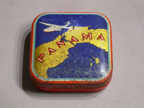 Panama Canal tin for "Ink Control" brand fountain pen tips, 1930s vintage