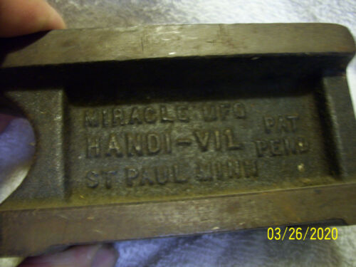 Title (ebay affiliate link): RARE! ANTIQUE 6" ANVIL - HANDI-VIL - MIRACLE MFG - PATENT PENDING - ST.PAUL, MN