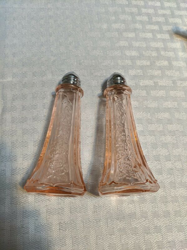 Title (ebay affiliate link): Anchor Hocking Pink Mayfair Open Rose Salt Pepper Shakers Pair Depression Glass