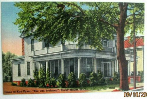 1940s linen postcard of Home of Kay Kysrl, " The Old Professor" Rocky Mount, NC