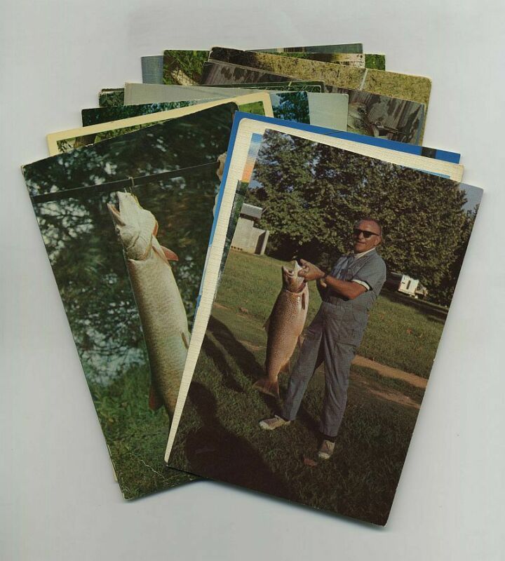 LOT (15) Fisherman Fishing Fish Souvenir Postcards Muskie Trout Crappie yz1223