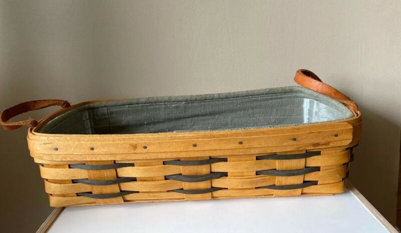 Title (ebay affiliate link): 1998 Vintage Longaberger Bread Basket, Sage Liner And Protector Leather Handles