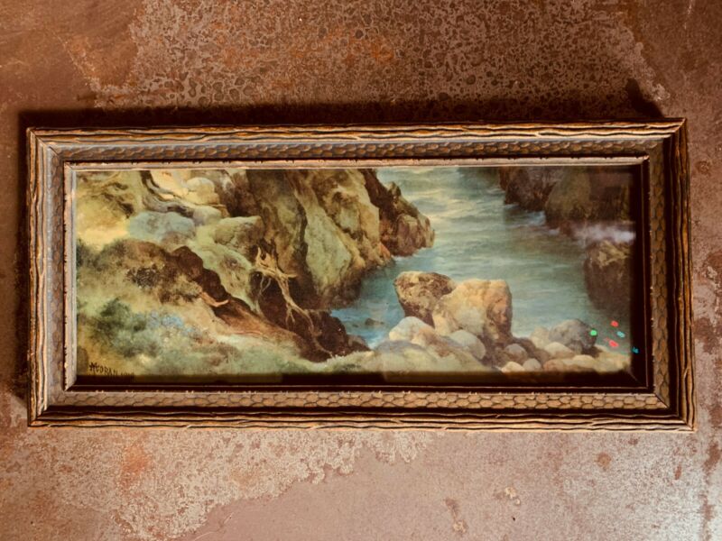 Antique Wooden Frame | Branch and Mermaid Scale Design | 10" x 4"