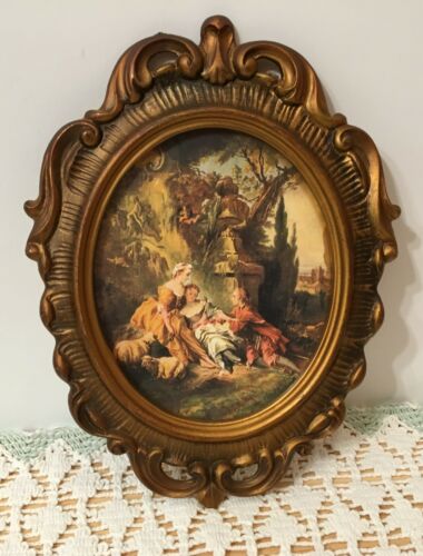 Title (ebay affiliate link): Vintage Plastic Picture Frame Made in USA Bronzed Ornate Glass Country Life #73
