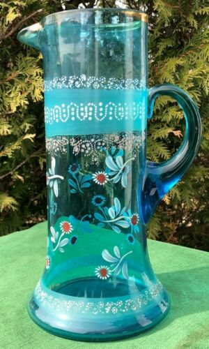Title (ebay affiliate link): ANTIQUE LARGE FENTON BLUE HAND PAINTED ENAMEL FLORAL PATTERN TANKARD PITCHER