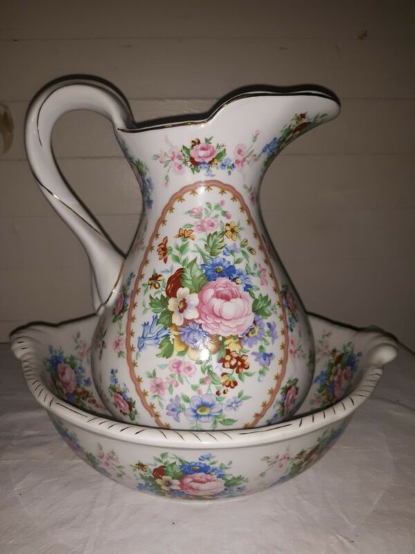 Title (ebay affiliate link): Beautiful Floral Print Vintage Wash Basin and Pitcher Beautiful Decoration