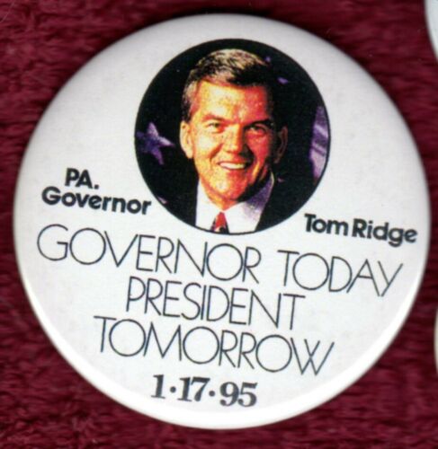 Title (ebay affiliate link): TOM RIDGE GOVERNOR PENNSYLVANIA 1995 INAUGURAL VETERAN POLITICAL PINBACK BUTTON