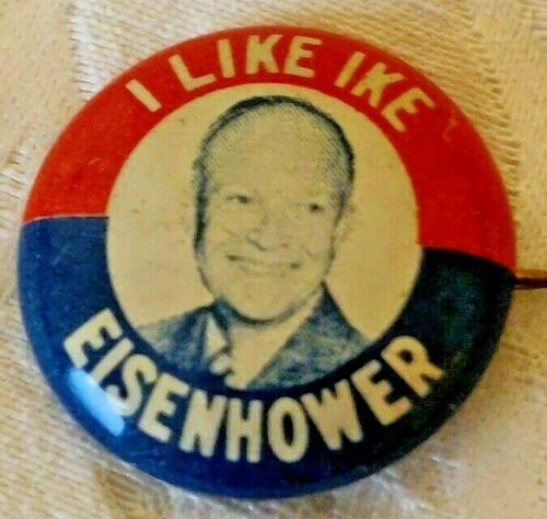 Title (ebay affiliate link): I Like Ike Eisenhower pinback button 1952 script