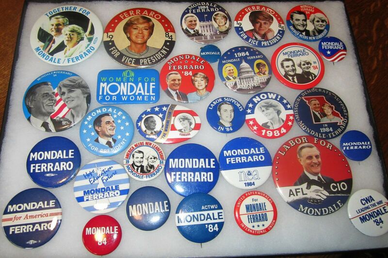 1984 WALTER MONDALE/ V.P. FEMALE FERRARO PRESIDENTIAL CAMPAIGN BUTTONS x30 #3