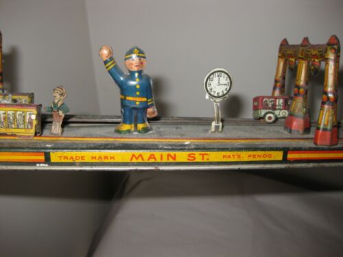Louis Marx Tin Litho Wind Up Toy New York Main Street Terminal Train Bus Car USA