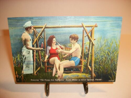 Title (ebay affiliate link): UNDER WATER SILVER SPRINGS FLORIDA WAITER SERVES COUPLE COCA COLA LINEN POSTCARD