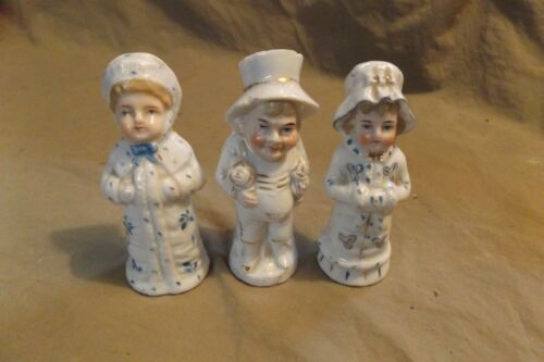 Antique Hand Painted Porcelain Figural Salt & Pepper Shaker 2 Ladies 1 Gentleman