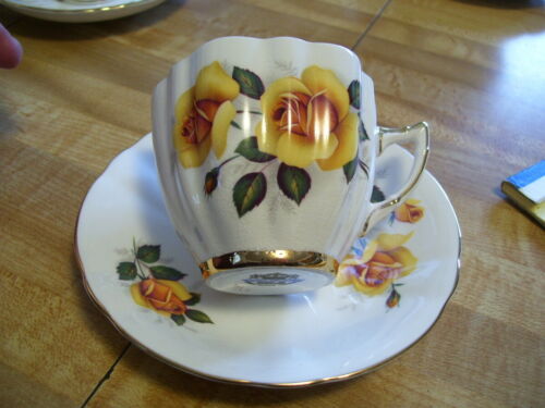 Antique Royal Victoria England Bone China Yellow Roses Cup Saucer