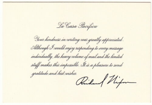 Title (ebay affiliate link): RICHARD NIXON LA CASA PACIFICA ACKNOWLEDGMENT CARD -- no button -- FREE SHIP!