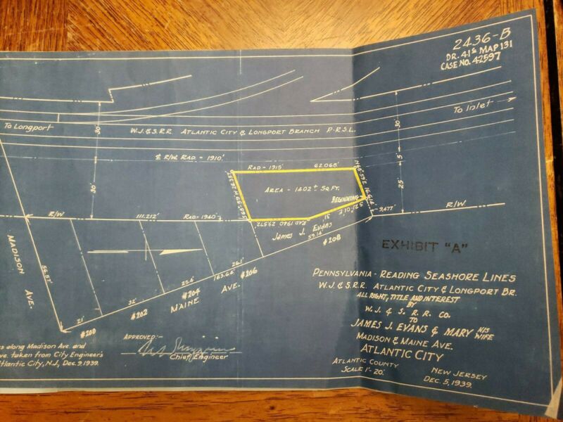 West Jersey & SeaShore R.R. 1939 Blueprint Atlantic City N.J.