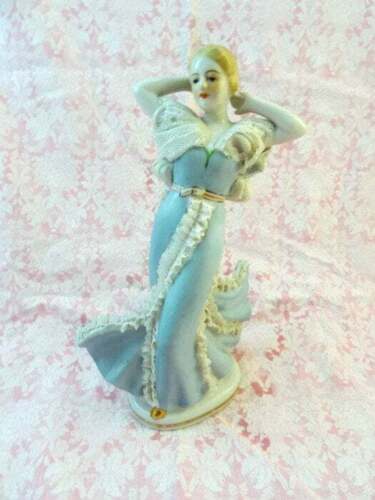 Vintage Art Deco Lace Porcelain Lady Powder Blue Dress Flapper Japan Figurine