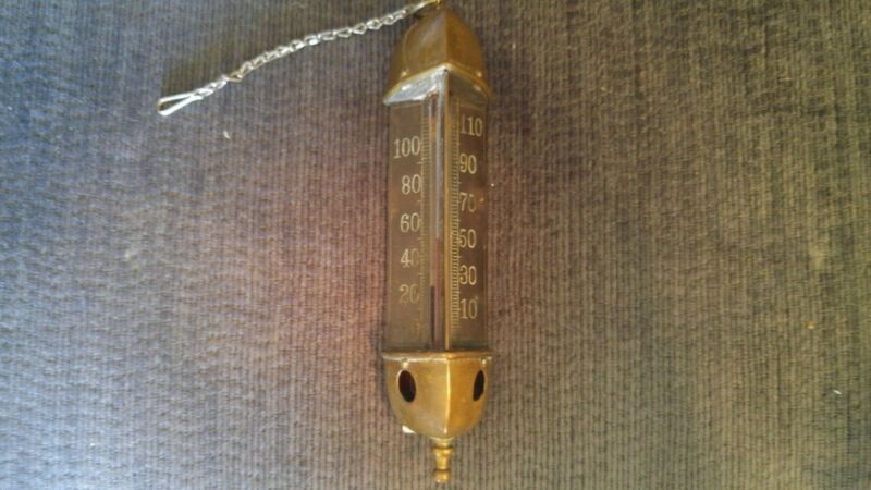 Estate Sale ; Antique  Hanging Brass ThermometerÂ