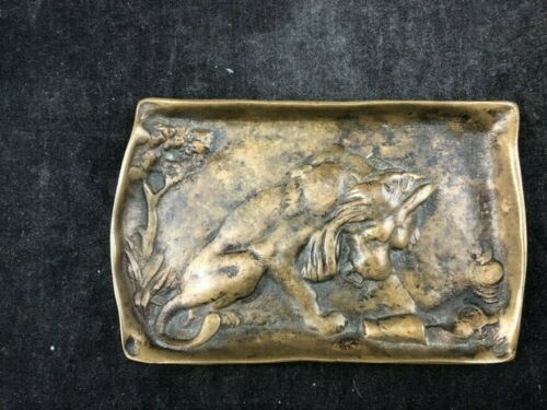 ANTIQUE CAST BRONZE ART NOUVEAU LION TRAY 4" X 6 1/4"