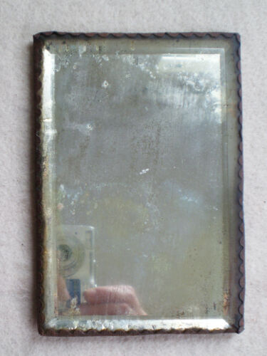 Antique Free Standing or Hanging Beveled SHAVING MIRROR Pressed Metal Frame