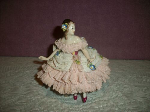 Dresden Lace Figurine 4 3/4" Seated Lady