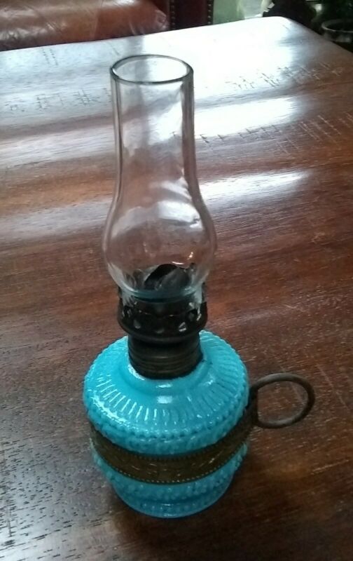 Victorian Blue Milk Glass Mini Oil Lamp Ca 1880-1890''s