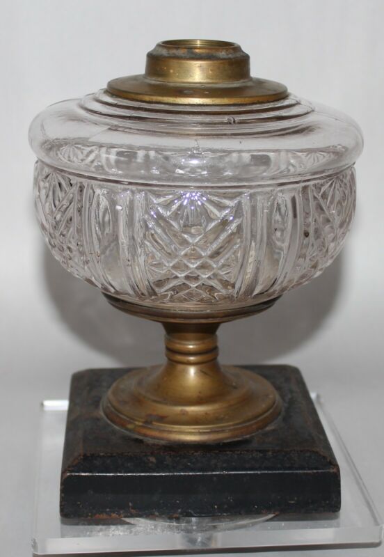 ANTIQUE VICTORIAN Oil Lamp PATTERN GLASS Cast Iron Base
