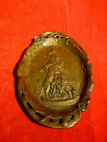 ANTIQUE GERMAN BREMER STAATMUSIKANTEN BRONZE TRAY - BROTHER GRIMM FOLKTALE