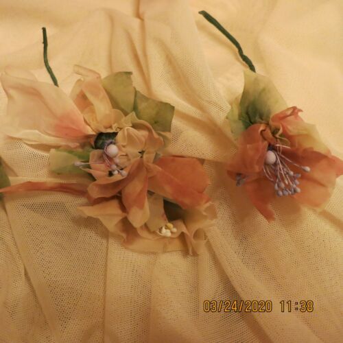 RARE WAXED FLOWERS ON STEMS DOLL ANTIQUE MILLINERY ITEM