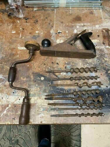 Antique hand drill and plane