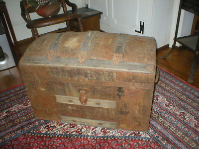 Title (ebay affiliate link): SMALL ANTIQUE CAMELBACK BARREL DOME TOP STEAMER TRUNK