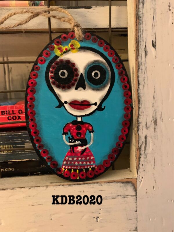 Title (ebay affiliate link): Primitive Folk Art Sugar Skull Ornament / Peg Hanger Hand painted