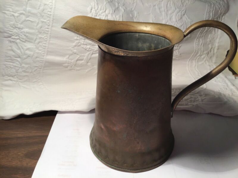 Title (ebay affiliate link): PRIMITIVE SOLID COPPER AND BRASS PITCHER HAND TOOLED AND HAMMERED