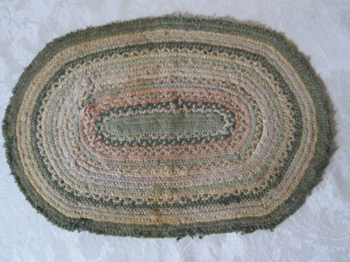 ANTIQUE HANDMADE MINIATURE BRAIDED RUG DOLL HOUSE RUG MAT AS IS CONDITION