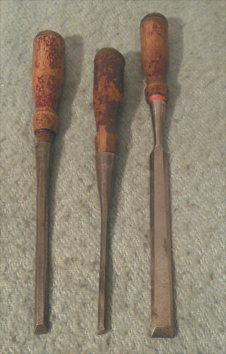 Title (ebay affiliate link): Vintage Lot 3 Stanley Red Handle Socket Chisels 1/4" 3/8" and 5/8" Wide