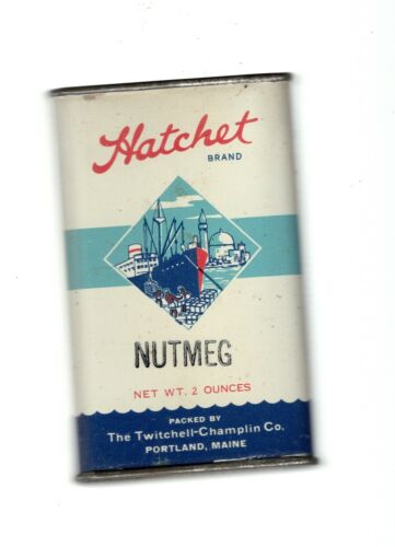 Vintage Hatchet Nutmeg 2 oz spice tin Portland Me.