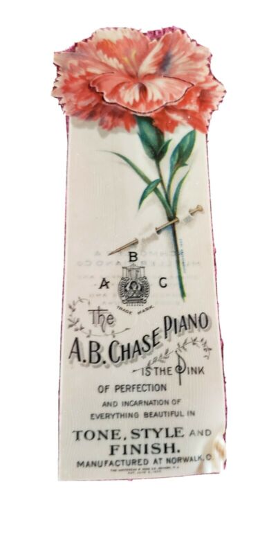 ANTIQUE Vintage A B CHASE PIANO CO Celluloid NORWALK OHIO Trade Card Bookmark