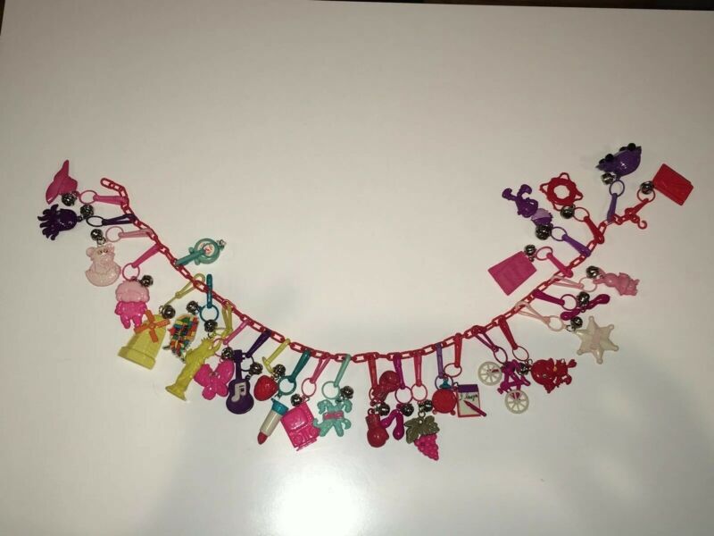 Retro 1980s Plastic Bell Charm Necklace & 29 Charms
