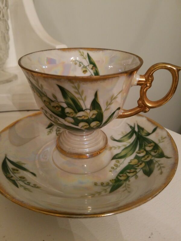 Title (ebay affiliate link): Vtg May Lily of the Valley Teacup & Saucer Lusterware Opalescent Ucagco