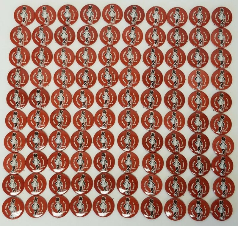 Lot of 100 Vintage Jimmy Carter 1976 Presidential Campaign Pinback Buttons