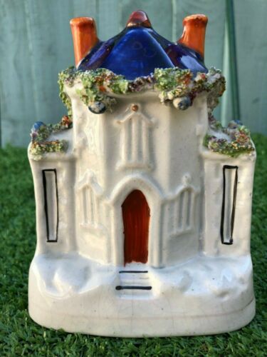 Title (ebay affiliate link): SUPERB MID 19thC STAFFORDSHIRE PORCELLANEOUS BUILDING, COTTAGE MONEY BOX c1860s