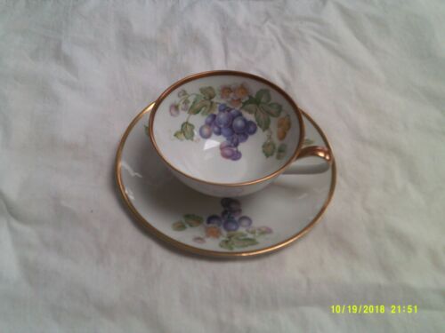 Bavarian Cup and Saucer with Fruit Design-gold trim