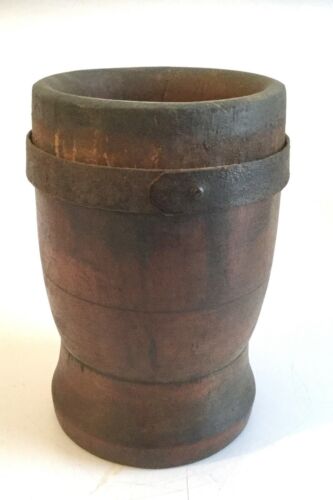 Title (ebay affiliate link): OLD Antique Wooden Mortar Vessel with Handmade Iron Strap RUSTIC PRIMITIVE